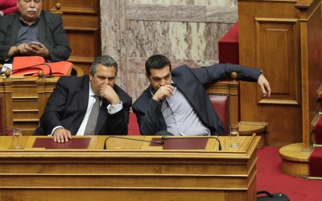 Ένα βήμα από τη διάλυσή της έφτασε χθες η δικομματική κυβέρνηση του Αλέξη Τσίπρα και του Πάνου Καμμένου μετά τη δέσμευση που