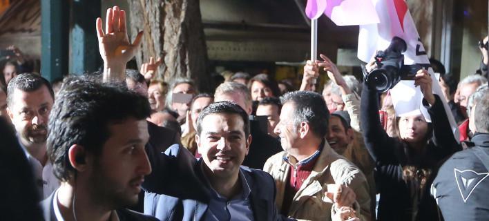 Δευτέρα, 26 Ιανουαρίου, 2015 Σε ένα πανηγυρικό κλίμα στα Προπύλαια ο Αλέξης Τσίπρας δεσμεύτηκε για απόδοση δικαιοσύνης και ρήξη με το καθεστώς της