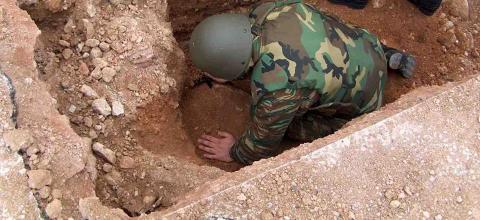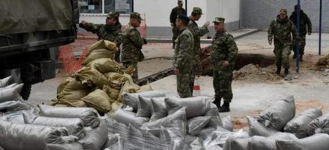 Στρατός-Ναυτικό-Αεροπορία Άνδρες του ΤΕΝΞ χτίζουν ανάχωμα στο σημείο όπου εντοπίστηκε η βόμβα στο Κορδελιό - BINTEO