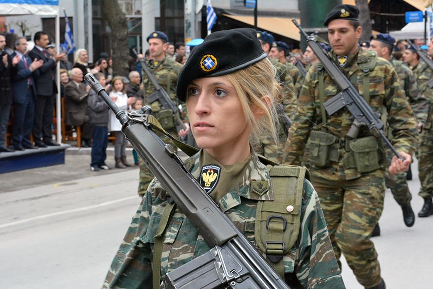 Ανάμεσα στους άνδρες που παρέλασαν ντυμένοι στα χακί, βρέθηκαν και πολλές στρατιωτίνες