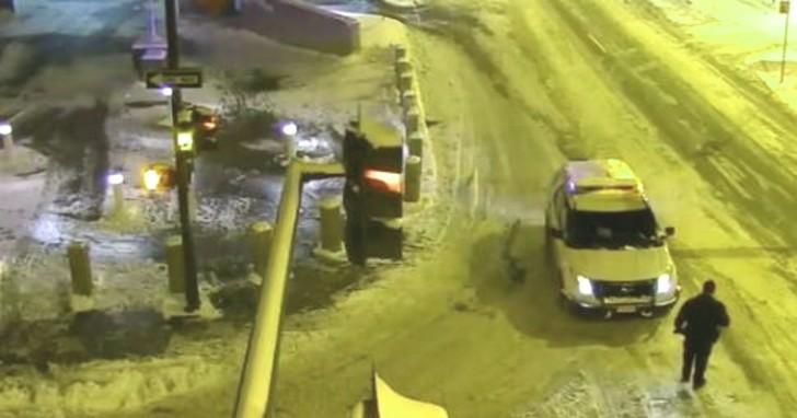 Οι κάμερες ασφαλείας κατέγραψαν μια καλή πράξη, όταν ένας αστυνομικός σταμάτησε με το περιπολικό του όχημα για να βοηθήσει