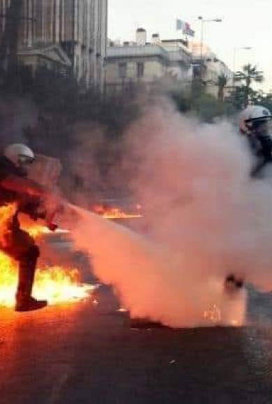 Αυτό θα πει ΣΥΝΑΔΕΛΦΟΣ - Aστυνομικός σβήνει τη φωτιά από συνάδελφό του, ενώ καίγεται και ο ίδιος