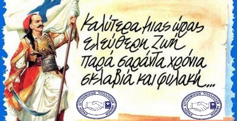Με τον εορτασμό της Επετείου της Επανάστασης του 1821, εμείς οι σύγχρονοι Έλληνες και Ελληνίδες Αστυνομικοί