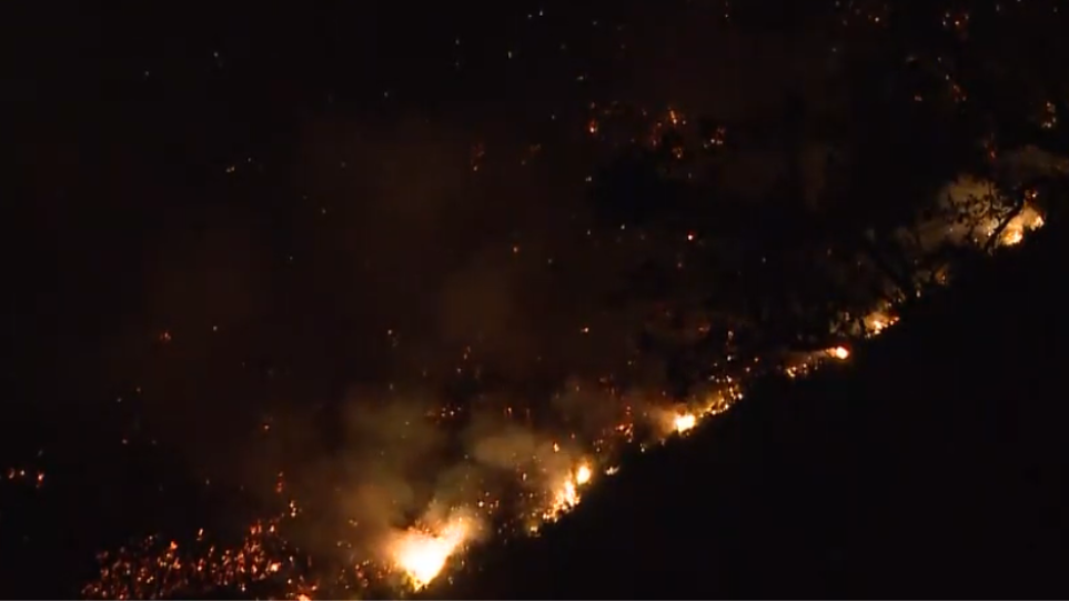 Oι ισχυρές δυνάμεις της Πυροσβεστικής παραμένουν επί τόπου και δίνουν ολονύχτια μάχη με τις φλόγες για να θέσουν την φωτιά