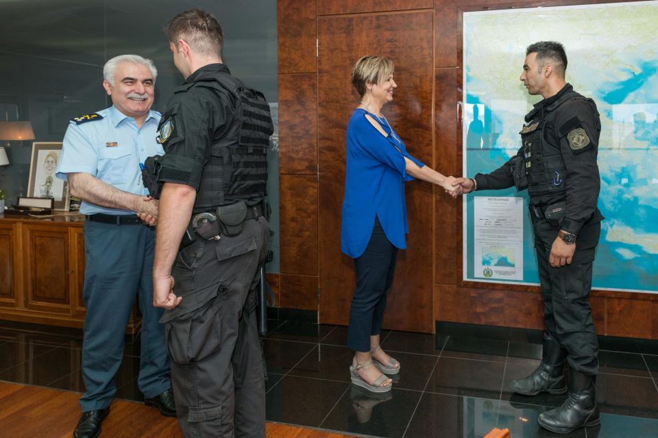Τους τρεις αστυνομικούς της Ομάδας ΔΙ.ΑΣ. Αθηνών, οι οποίοι με την άμεση παρέμβασή τους κατάφεραν να σώσουν τη ζωή πολίτη