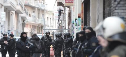 Πολυπληθείς ομάδες της ΕΛ.ΑΣ., ανάμεσά τους διμοιρίες ΜΑΤ, μέλη της ομάδας ΟΠΚΕ...