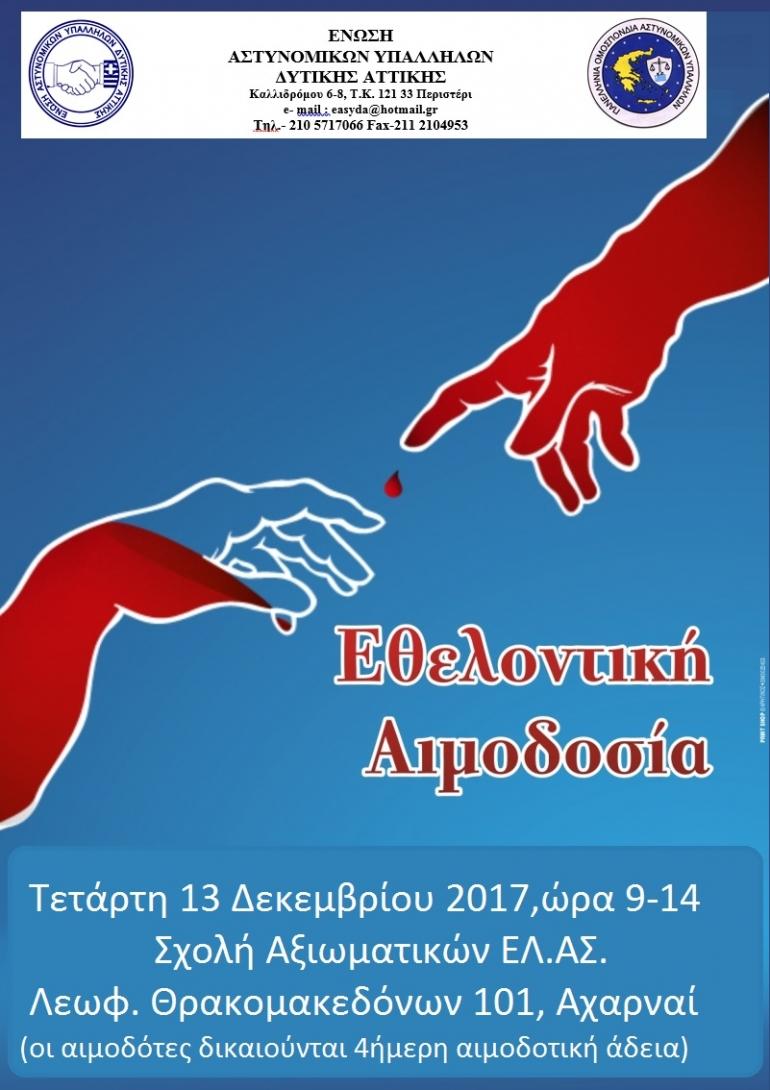 Παρασκευή, 8 Δεκεμβρίου, 2017 Σας γνωρίζουμε ότι η Ένωση μας θα πραγματοποιήσει εθελοντική αιμοδοσία ...