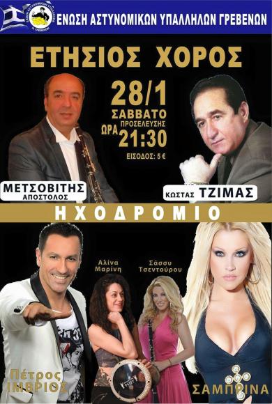 Δευτέρα, 23 Ιανουαρίου, 2017Ετήσια Χοροεσπερίδα της Ένωσης Αστυνομικών Υπαλλήλων Γρεβενών