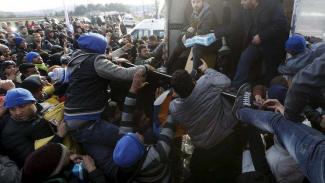 Ενώ ο νεαρός μεταφέρεται σε νοσοκομείο, πίσω στον σιδηροδρομικό σταθμό, μεγάλες ομάδες μεταναστών εξαπέλυαν επίθεση με πέτρες και ξύλα εναντίον των αστυνομικών δυνάμεων των Σκοπίων που έχουν παραταχθεί στη μεθόριο.