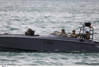 Στη θαλάσσια περιοχή, ανοιχτά του κόλπου έλαβαν χώρα δύο επιπλέον σενάρια. Το πρώτο περιελάμβανε αποβίβαση καταδρομέων από ελικόπτερο για νηοψία σε ύποπτο πλοίο ενώ στο δεύτερο, διάσωσης ναυαγού από ελικόπτερο των Ενόπλων Δυνάμεων.