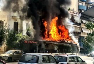 Συναγερμός σήμανε στην Πυροσβεστική σήμερα αργά το μεσημέρι, καθώς ένα αστικό λεωφορείο έπιασε φωτιά στη συμβολή των οδών Νιρβάνα και Αχαρνών στα Κάτω Πατήσια, με αποτέλεσμα να λαμπαδιάσει.