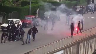 Οι οπαδοί πετούν διάφορα αντικείμενα στους «αντίπαλους» ενώ κάποιοι δέχονται πολλαπλά χτυπήματα στο κεφάλι με αποτέλεσμα να πέσουν αναίσθητοι στο έδαφος.