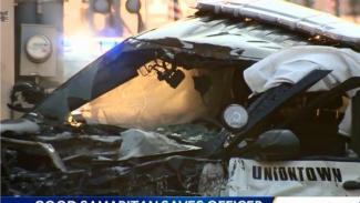 Ένας άντρας της Πενσυλβάνιας επαινείται για την ηρωική του δράση να βοηθήσει έναν αστυνομικό που παγιδεύτηκε στο περιπολικό του μετά από σύγκρουση το απόγευμα της Κυριακής.