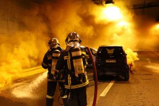 Ο οδηγός, με την χρήση πυροσβεστήρα προσπάθησε να κατασβήσει την πυρκαγιά, ενώ το δεύτερο άτομο βγήκε από την σήραγγα και ενημέρωσε τις Αρχές. Ο φύλακας της διαχειρίστριας εταιρείας από το Κέντρο Διαχείρισης Κυκλοφορίας και διερχόμενοι πολίτες ειδοποίησαν το Ενιαίο Συντονιστικό Κέντρο Επιχειρήσεων (Ε.Σ.Κ.Ε.).