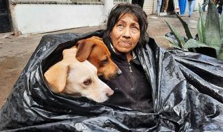 Σε μία μαύρη σακούλα σκουπιδιών δίπλα στους δρόμους εντοπίστηκε μία 65χρονη γυναίκα στην Τιχουάνα του Μεξικό, στην προσπάθειά της να προστατευτεί τόσο η ίδια όσο και οι έξι τετράποδοι φίλοι της από την βροχή και το «τσουχτερό» κρύο.
