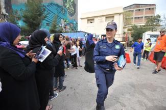 Τις λιμενικούς συνόδευε και ένας ανώτερος αξιωματικός του σώματος με τους μετανάστες σε πρώτη φάση να περιεργάζονται το φυλλάδιο που είναι γραμμένο σε τέσσερις γλώσσες (αραβικά, φαρσί, ελληνικά και αγγλικά).