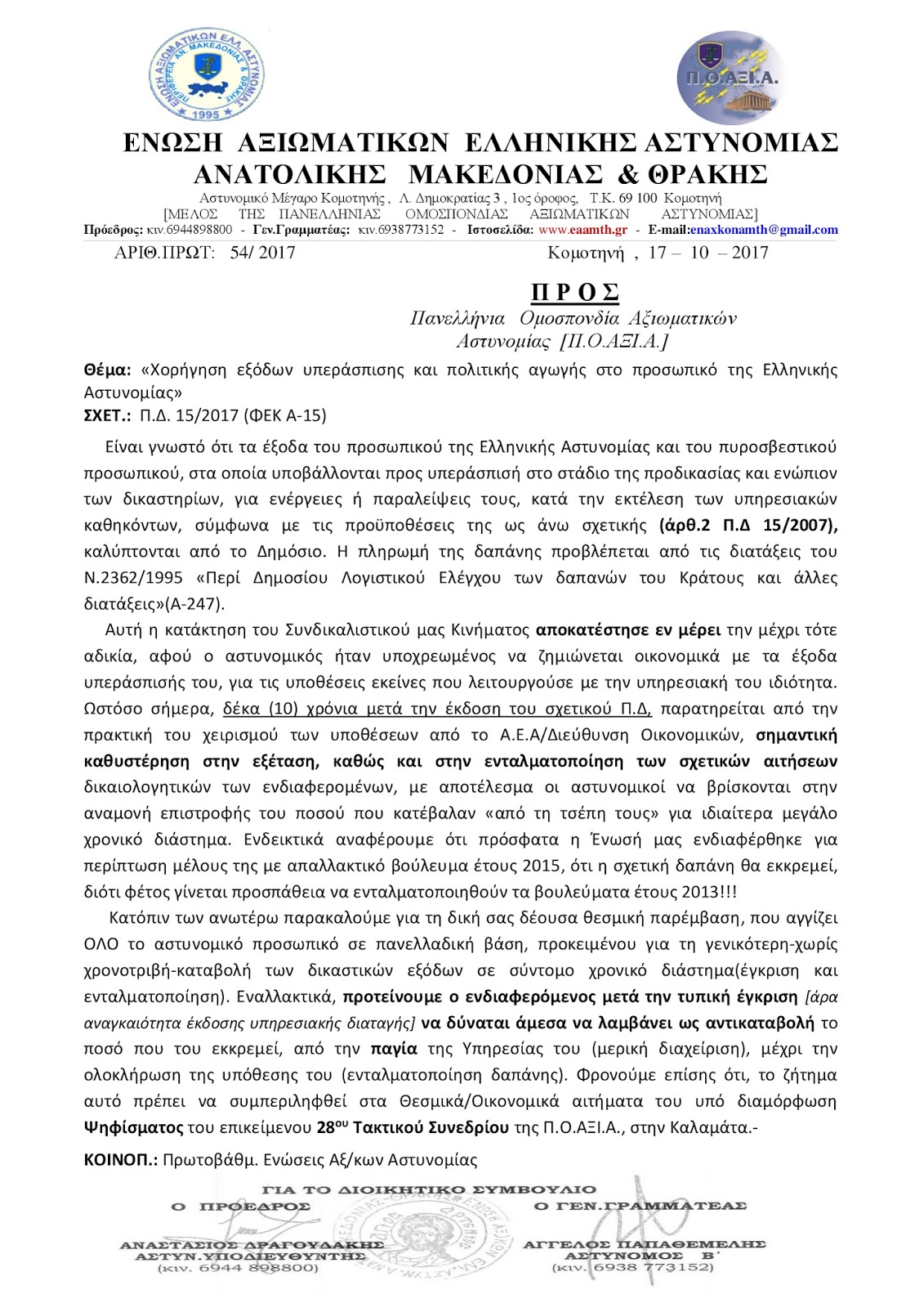 Εικόνα 16:46 | 17/10/2017 ΣΥΝΔΙΚΑΛΙΣΤΙΚΕΣ ΕΝΩΣΕΙΣ ΕΛ.ΑΣ. ΕΝΩΣΗ ΑΞΙΩΜΑΤΙΚΩΝ ΕΛΛΗΝΙΚΗΣ ΑΣΤΥΝΟΜΙΑΣ ΑΝΑΤΟΛΙΚΗΣ ΜΑΚΕΔΟΝΙΑΣ & ΘΡΑΚΗΣ