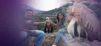 Η αγάπη ενός γυπαετού σ ένα ζευγάρι που τον βοήθησε και του πρόσφερε νερό αποτυπώνεται στις φωτογραφίες .