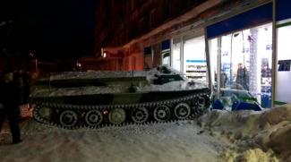 Το όλο σκηνικό διαδραματίστηκε στην περιοχή της Κριμαίας. Ο Ρώσος έκλεψε το άρμα μάχης από στρατιωτική βάση και αφού πέρασε πάνω από ένα αυτοκίνητο μάρκας Daewoo, «μπούκαρε» στην τζαμαρία του σούπερ μάρκετ για να... κάνει τα ψώνια του.