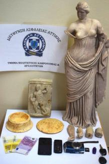 Συνελήφθη, χθες (4-9-2018) το πρωί στο Λουτράκι Κορινθίας, από αστυνομικούς του Τμήματος Πολιτιστικής Κληρονομιάς και Αρχαιοτήτων της Διεύθυνσης Ασφάλειας Αττικής, ένας 46χρονος ημεδαπός, για παράνομη κατοχή αρχαίων κινητών μνημείων. Ταυτοποιήθηκαν δύο (2) ημεδαποί συνεργοί του.