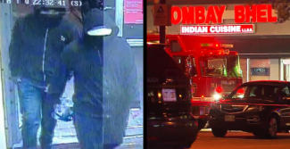 Η αστυνομία ανάρτησε στον λογαριασμό της στο Twitter μια φωτογραφία που εικονίζει δύο άνδρες που φορούν σκουρόχρωμες μπλούζες με κουκούλες καθώς μπαίνουν στο εστιατόριο, με τον έναν να μοιάζει να κουβαλάει ένα πακέτο.