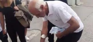 Μόλις είχε πάρει εξιτήριο από το ΚΑΤ μίλησε στους δημοσιογράφους, έδειξε τα τραύματα στα πόδια του από το ΙΧ, αλλά και στη μέση από το παγκάκι της στάσης.
