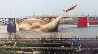 Το περιστατικό, στο οποίο συμμετείχε ένα μαχητικό αεροσκάφος MiG-17, σημειώθηκε στον ποταμό Ομπ της Σιβηρίας, κάτω από μία γέφυρα του Νοβοσιμπίρσκ και το παρακολούθησαν εκατοντάδες άνθρωποι.