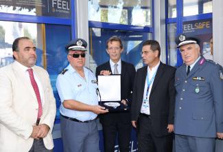 Απονεμήθηκε χθες (13-09-2015) το μεσημέρι, από διοικητικά στελέχη της Δ.Ε.Θ. – HELEXPO, Βραβείο Συμμετοχής στο Πληροφοριακό Κέντρο (Περίπτερο) της Ελληνικής Αστυνομίας, το οποίο λειτούργησε στο πλαίσιο της 80ης Δ.Ε.Θ.