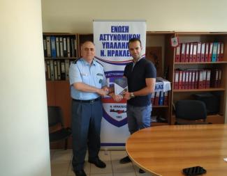 (Ο Νίκος Χρυσάκης (αριστερά) με τον πρόεδρο της Ένωσης Αστυνομικών Υπαλλήλων Νομού Ηρακλείου Γιώργο Πικράκη, κατά την επίσκεψή του στα γραφεία της Ένωσης).