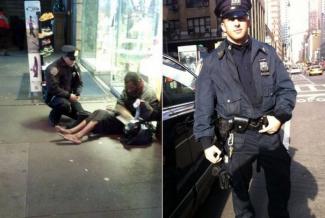 Ειδικότερα, ο αστυνομικός έκανε περιπολία κοντά στη διάσημη «Τάιμς Σκουέρ» όταν είδε στο πεζοδρόμιο τον άστεγο ζητιάνο με τα πόδια «γυμνά και γεμάτα φουσκάλες».