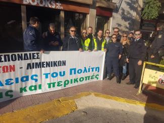 Παράσταση διαμαρτυρίας των Ομοσπονδιών στο Γενικό Λογιστήριο του Κράτους. Οι ένστολοι έχουν αποκλείσει την είσοδο αντιδρώντας για τη μη εφαρμογή της απόφασης του ΣτΕ που είχε κρίνει αντισυνταγματικές τις μειώσεις στους μισθούς.