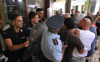 Πριν λίγο οι τόνοι ανέβηκαν και υπήρξαν σπρωξιές μεταξύ των μελών του ΠΑΜΕ και αστυνομικών. Επικράτησε ένταση που γρήγορα εκτονώθηκε.