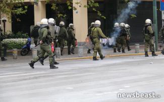 Για κάποια λεπτά στο προαύλιο της Βουλής, στη διασταύρωση Βασιλίσσης Σοφίας και Πανεπιστημίου, αλλά και στην ευρύτερη περιοχή, η ατμόσφαιρα έγινε αποπνικτική από τα δακρυγόνα. Αυτό έκανε τους διαδηλωτές να σκορπίσουν στα γύρω στενά και η ένταση να αποκλιμακωθεί.