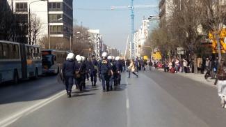Οι αντιεξουσιαστές προσπάθησαν να μπούνε μέσα στο κτίριο αλλά εμποδίστηκαν από τις δυνάμεις των ΜΑΤ που ήταν παρατεταγμένες στην είσοδο.