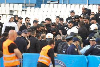 Αφού αρχικά δημιουργήθηκε ένταση με δημοσιογράφους που καλύπτουν το ρεπορτάζ της ΑΕΚ, οι οπαδοί του ΠΑΟΚ που βρίσκονται στην εξέδρα των προσκεκλημένων της ΕΠΟ ενεπλάκησαν με άνδρες των ΜΑΤ.