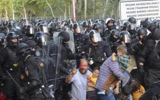 Ένταση σημειώθηκε όταν μια ομάδα περίπου 300 ανθρώπων που φώναζε το σύνθημα «ανοίξτε τις πόρτες» στα αραβικά επιχείρησε να παραβιάσει κιγκλιδώματα της αστυνομίας, με τις δυνάμεις ασφαλείας να τους απωθούν χρησιμοποιώντας τα γκλομπ.