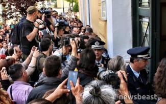 Την ώρα που έμπαιναν στο κτίριο οι δύο συλληφθέντες, ορισμένοι εκ των συγκεντρωμένων προπηλάκισαν τους αστυνομικούς.