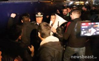Τα πνεύματα ηρέμησαν και οι συγκεντρωμένοι παρέμειναν στο σημείο φωνάζοντας συνθήματα.