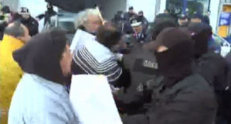 Στο σημείο είχαν συγκεντρωθεί εργαζόμενοι σε νοσοκομεία της Κρήτης, οι οποίοι επιχείρησαν να πλησιάσουν στον χώρο όπου ο πρωθυπουργός είχε συνάντηση με τους παραγωγικούς φορείς.