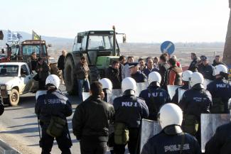 Σε εξέλιξη βρίσκονται σήμερα οι κινητοποιήσεις των αγροτών σε διάφορα σημεία της Βόρειας Ελλάδας. Η κατάσταση στον Έβρο είναι έκρυθμη καθώς, δυνάμεις της αστυνομίας έκλεισαν τον δρόμο στους αγρότες που θέλησαν να παρατάξουν τα τρακτέρ τους, με αποτέλεσμα την έντονη αντίδραση των διαδηλωτών. Συγκεκριμένα, σύμφωνα με το seleo.gr, κλούβες των ΜΑΤ έχουν κλείσει το τελωνείο των Κήπων με τους αγρότες να προσπαθούν να περάσουν από τους γύρω χωματόδρομους.