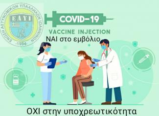Αποφάσισε ομόφωνα πως τάσσεται υπέρ του εμβολιασμού, κατά όμως της υποχρεωτικότητας αλλά και κάθε είδους κυρώσεων που θα επιβαρύνουν οικονομικά τα ήδη πενιχρά εισοδήματά τωνσυναδέλφωνμας(διενέργεια εβδομαδιαίων rapidtestή ακόμη χειρότερα αναστολή εργασίας).
