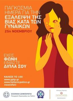 Η Ένωση Αστυνομικών Υπαλλήλων Πειραιά με αφορμή την Παγκόσμια Ημέρα Εξάλειψης της Βίας κατά των Γυναικών, καλεί ΟΛΕΣ τις γυναίκες που υφίστανται οποιαδήποτε μορφή βίας να υπερβούν τον φόβο τους και να σπάσουν την σιωπή τους.