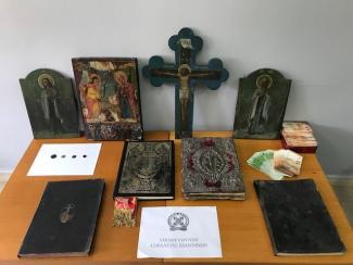 · Θείο και Ιερό Ευαγγέλιο έτους 1818 καθώς και χάλκινο νόμισμα (κλασικών ή ελληνιστικών χρόνων) με παραστάσεις κεφαλής και σκύλου, τα οποία εμπίπτουν στις προστατευτικές διατάξεις της σχετικής νομοθεσίας