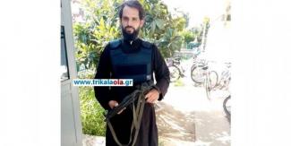 Στις φωτογραφίες που δημοσιεύει η ιστοσελίδα trikalaola.gr, εμφανίζεται ένας παπάς που φορά ράσα.