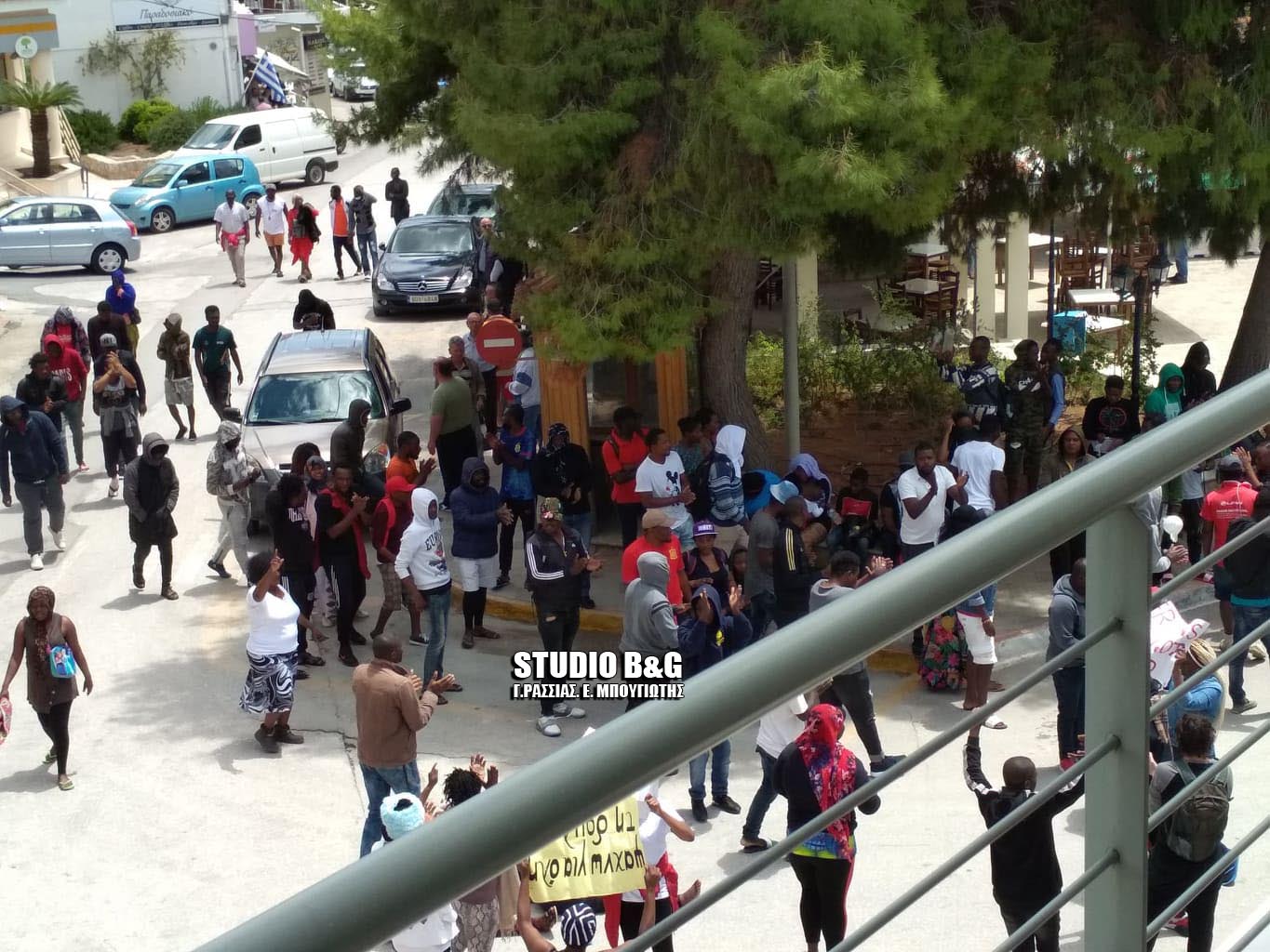 Συγκεκριμένα, περίπου 150 από τους 500 αιτούντες άσυλο που διαμένουν στη δομή στο Πόρτο Χέλι, πραγματοποίησαν πορεία προς το κέντρο της πόλης, το μεσημέρι της Τετάρτης.