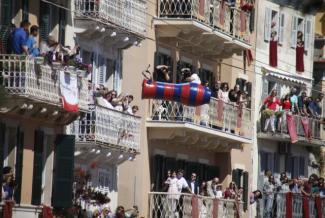 Με το σήμα της πρώτης Ανάστασης, οι κάτοικοι της Κέρκυρας έβγαλαν στα μπαλκόνια τους τα κόκκινα εμβλήματα, απομεινάρια της ενετοκρατίας, και πέταξαν τα τεράστια κόκκινα κανάτια, γεμάτα με νερό, υπό τα όργανα των φιλαρμονικών και τους βροντερούς κανονιοβολισμούς που ακούγονταν από το Παλιό Φρούριο της Κέρκυρας.