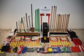 - Πανό, φανέλες, κασκόλ κ.α. που έφεραν διακριτικά διαφόρων ομάδων.