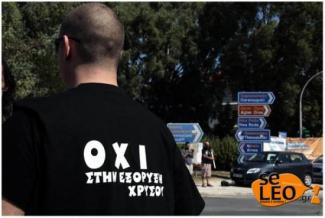 Έχοντας αναρτήσει πανό στον τοίχο που έχτισαν, όπου αναγράφεται το σύνθημα «Χτίζουμε την ενότητα. Χρόνια πολλά κ. Στρατουδάκη», οι κάτοικοι των περιοχών κοντά στις Σκουριές Χαλκιδικής πραγματοποιούν διαμαρτυρία στην τοποθεσία Χονδρό Δένδρο, στην είσοδο των Σκουριών.