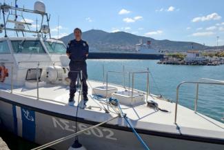 Τον αποχαιρετάμε. Μπαίνει μέσα στην καμπίνα του σκάφους. Όπου να 'ναι το VHF θα τον ξανακαλέσει σε μια ακόμα επιχείρηση διάσωσης...