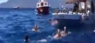 Με ανθρώπους μέσα στη θάλασσα να εκλιπαρούν για βοήθεια και άνδρες από τις βάρκες να πετούν σωσίβια προσπαθώντας να σώσουν όσους μπορούν, το βίντεο καταδεικνύει τις τραγικές στιγμές λίγα λεπτά μετά την σύγκρουση του ταχύπλοου σκάφους με το τουριστικό σκάφος.